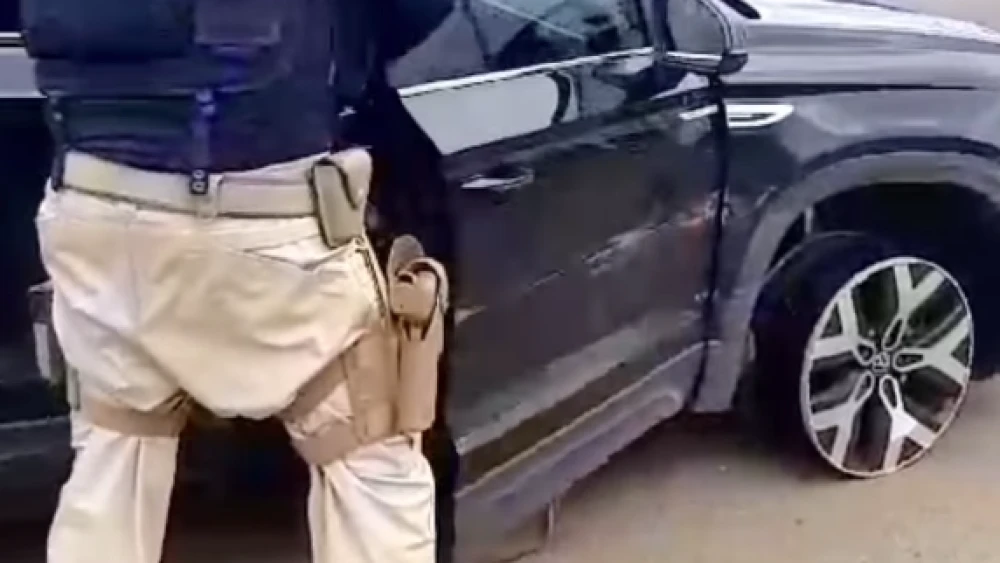 Um homem de 41 anos foi flagrado pela Polícia Rodoviária Federal (PRF) dirigindo um carro sem os dois pneus do lado direito do carro.