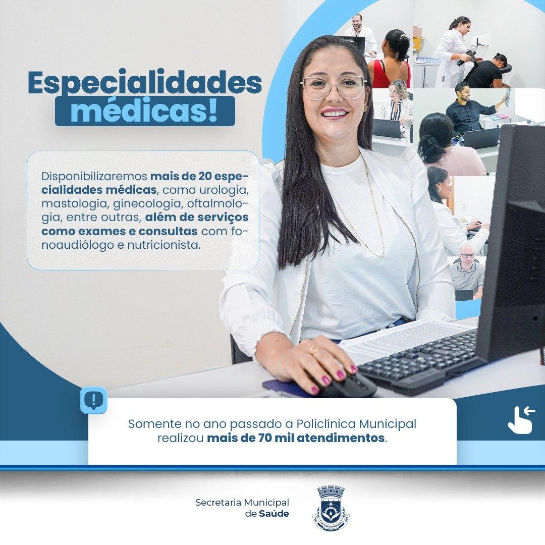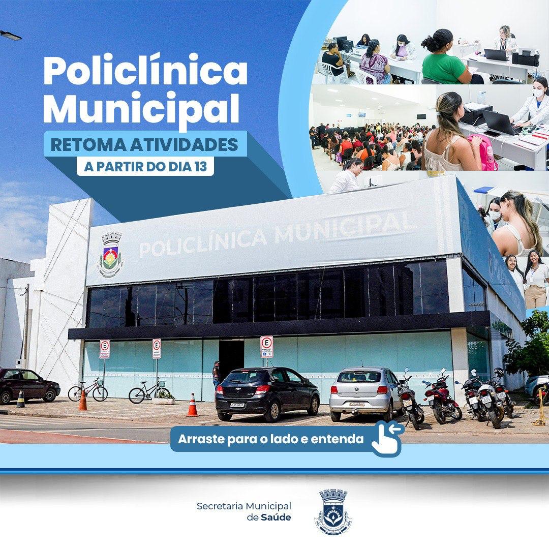 A Policlínica Municipal de Luís Eduardo Magalhães, localizada na Avenida Ayrton Senna, no bairro Santa Cruz, retoma suas atividades na próxima segunda-feira, dia 13 de janeiro, das 7h às 18h (sem intervalo para almoço), com a oferta de mais de 20 especialidades médicas, nas áreas de urologia, mastologia, ginecologia, oftalmologia, dentre outros serviços, como exames e consultas com fonoaudiólogo e nutricionista.