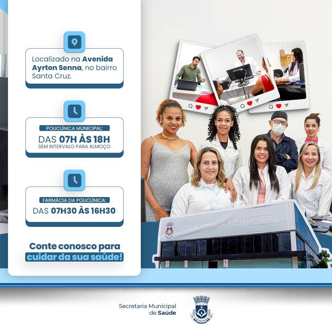 Policlínica Municipal – 7h às 18h, sem intervalo para almoço.