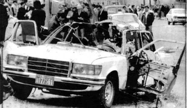 Os soldados de Ortega meteram dois disparos de bazuca na sua Mercedes Blindada, no exílio, em Assuncion, capital do Paraguay. O primeiro errou, mas o segundo pegou em cheio.