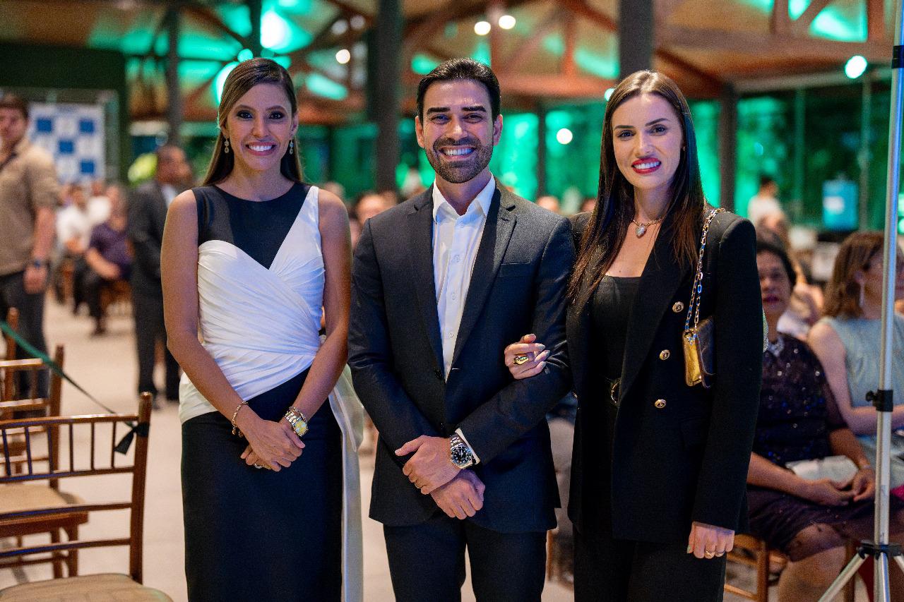 A primeira turma de Medicina de Luís Eduardo Magalhães. Abaixo, a CEO da Sulamérica, Mariana Feliciano, o prefeito de Luís Eduardo Magalhães, Junior Marabá e a primeira-dama, Cinthya Borges.