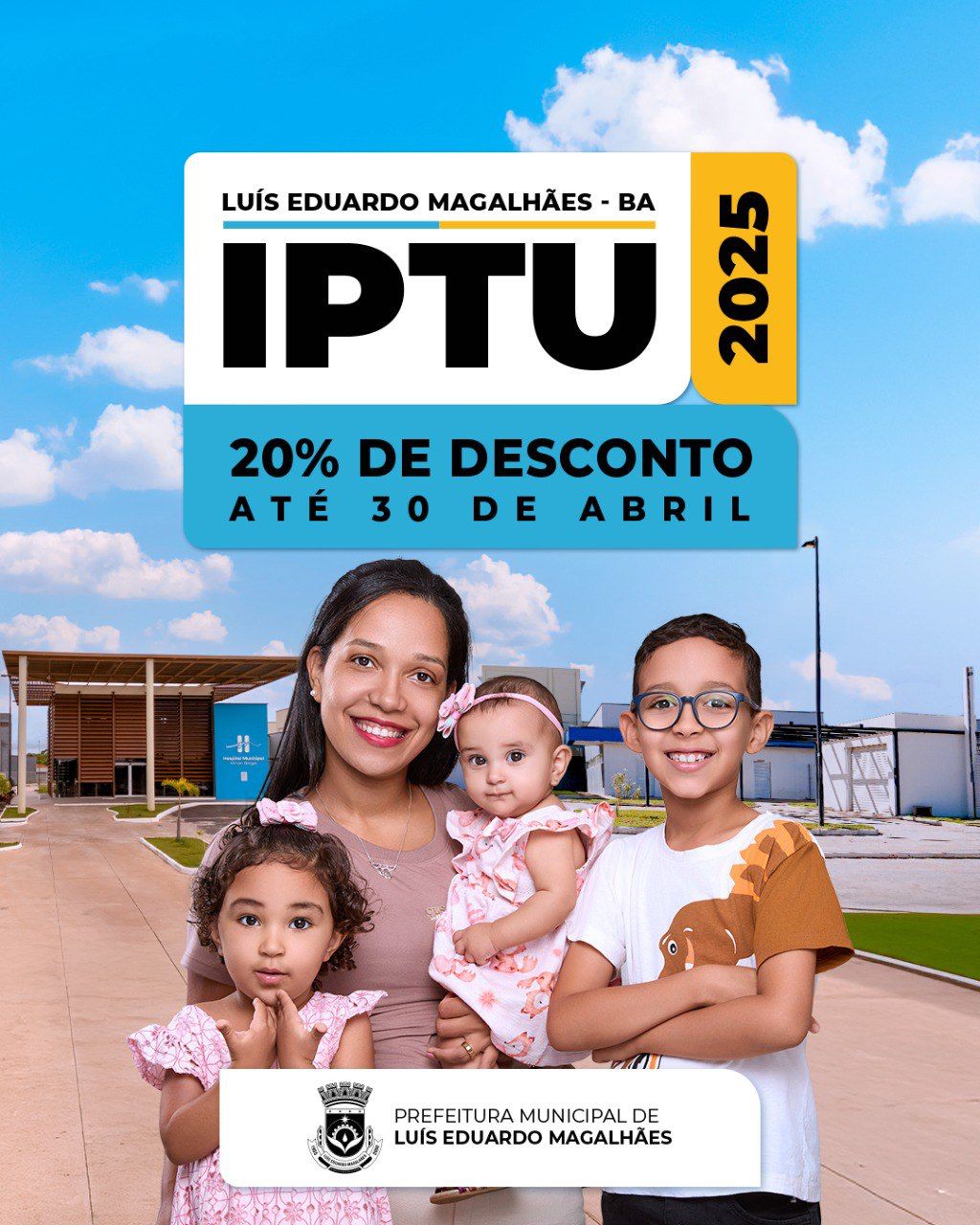 Os contribuintes de Luís Eduardo Magalhães já podem pagar o IPTU 2025, em parcela única, com desconto de 20% sobre o valor total devido, até o dia 30 de abril.