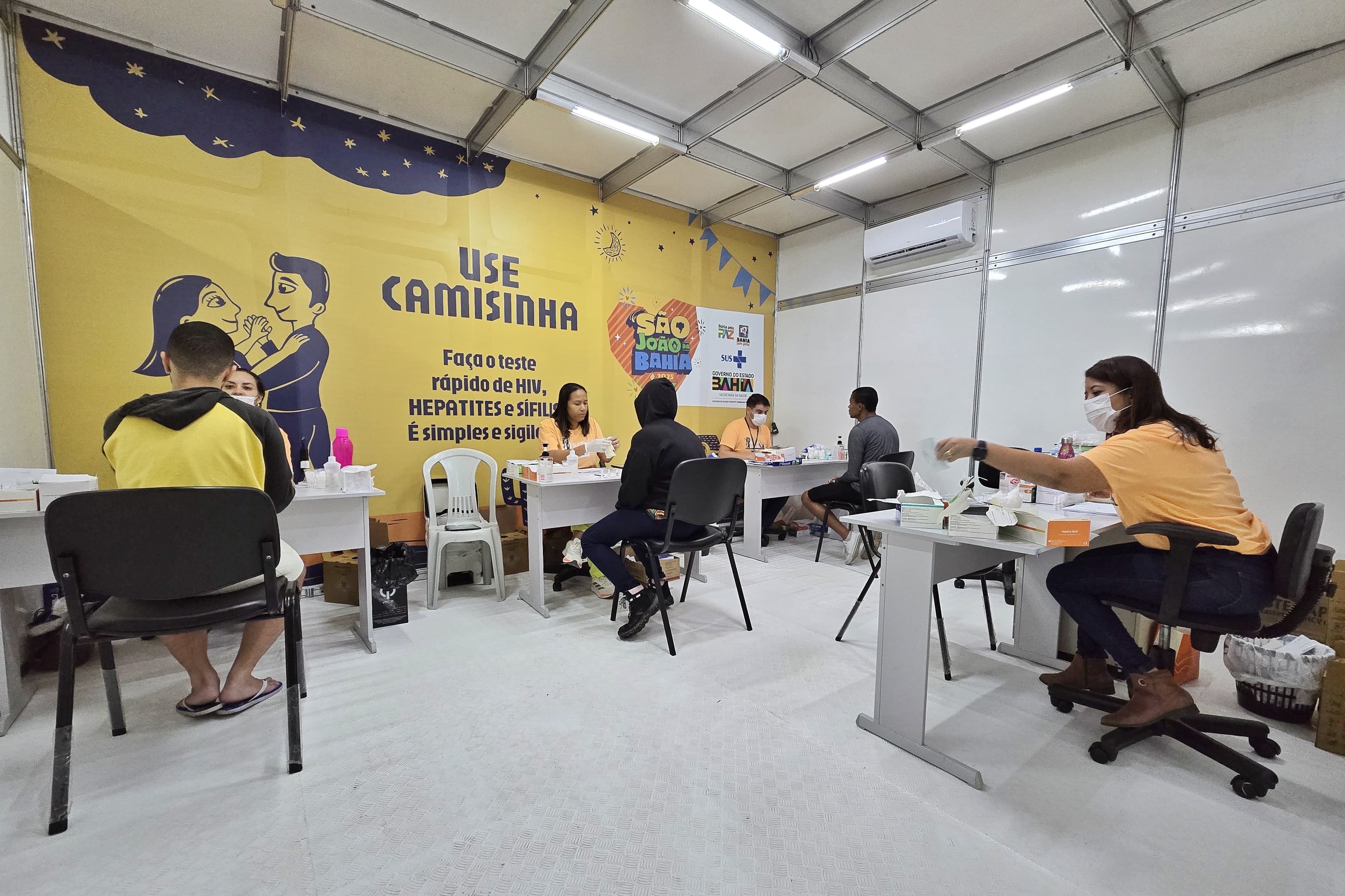 Um espaço para lembrar da importância de cuidar da saúde e de fazer exames regularmente de infecções sexualmente transmissíveis (ISTs). É assim que muitos usuários definem o posto de testagem montado pela Secretaria da Saúde do Estado na Arena Zé Cachoeira, durante o Itapedro, festa em comemoração ao São Pedro, em Itabuna, sul da Bahia. No local, quem busca o serviço pode fazer exames de detecção de HIV, sífilis e hepatites B e C.