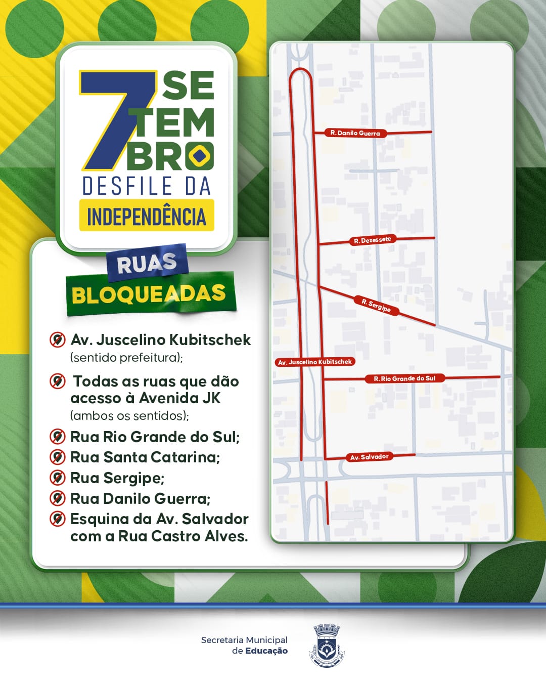 Confira o cronograma e as alterações no trânsito para o Desfile do 7 de setembro.