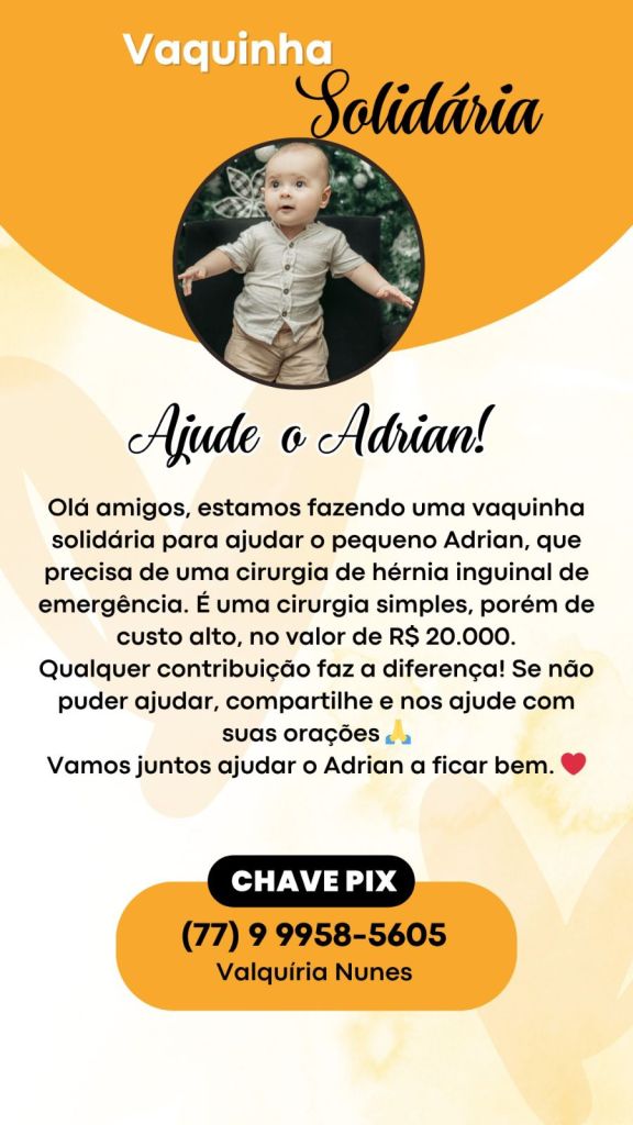 O Adrian está precisando da sua solidariedade!
