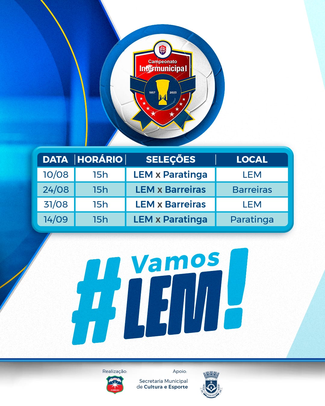 O campeonato é uma realização da Liga Desportiva de Luís Eduardo Magalhães, com apoio da Prefeitura Municipal, por meio da Secretaria de Cultura e Esporte.