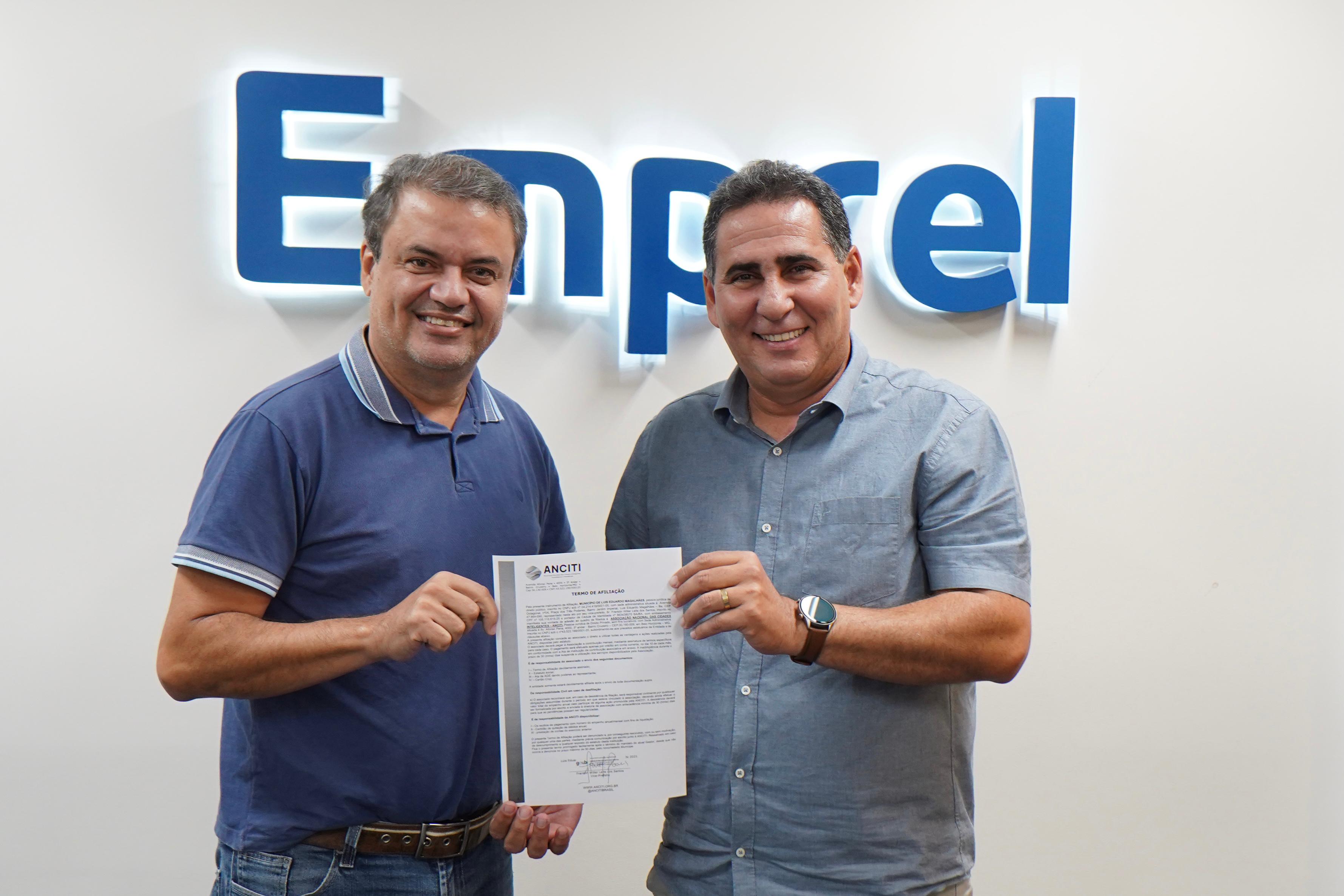 Luís Eduardo Magalhães oficializou nesta terça-feira (08), sua adesão à Associação Nacional das Cidades Inteligentes, Tecnológicas e Inovadoras (ANCITI). A assinatura do termo de filiação foi realizada na sede da Empresa Municipal de Informática do Recife (Emprel), na capital pernambucana, com a presença do vice-prefeito Franklin Willer, que representou o município no ato.