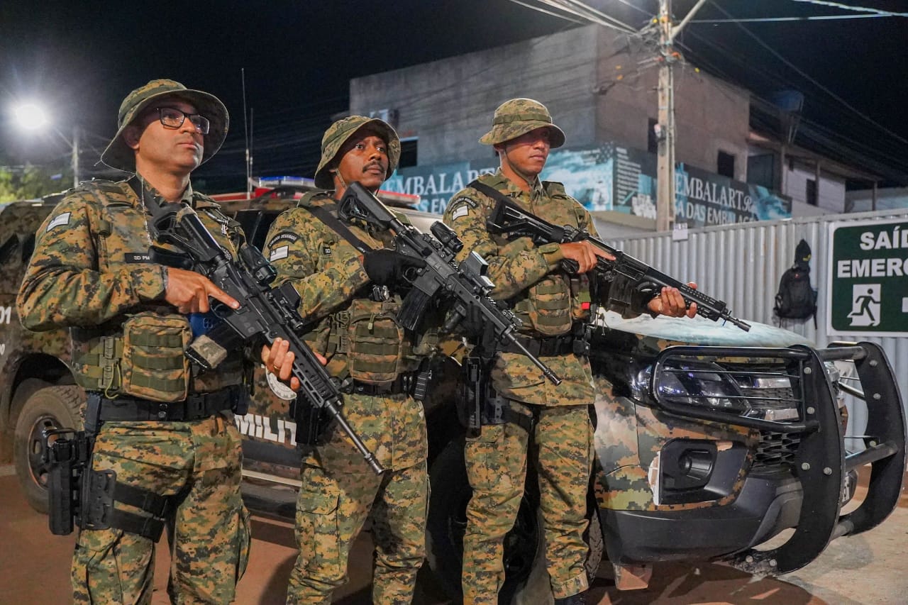 Quatro pessoas foram abordadas, sendo dois adultos e dois adolescentes. Com os envolvidos, foram localizadas armas de fogo com numeração suprimida, grande quantidade de munições e acessórios táticos.
