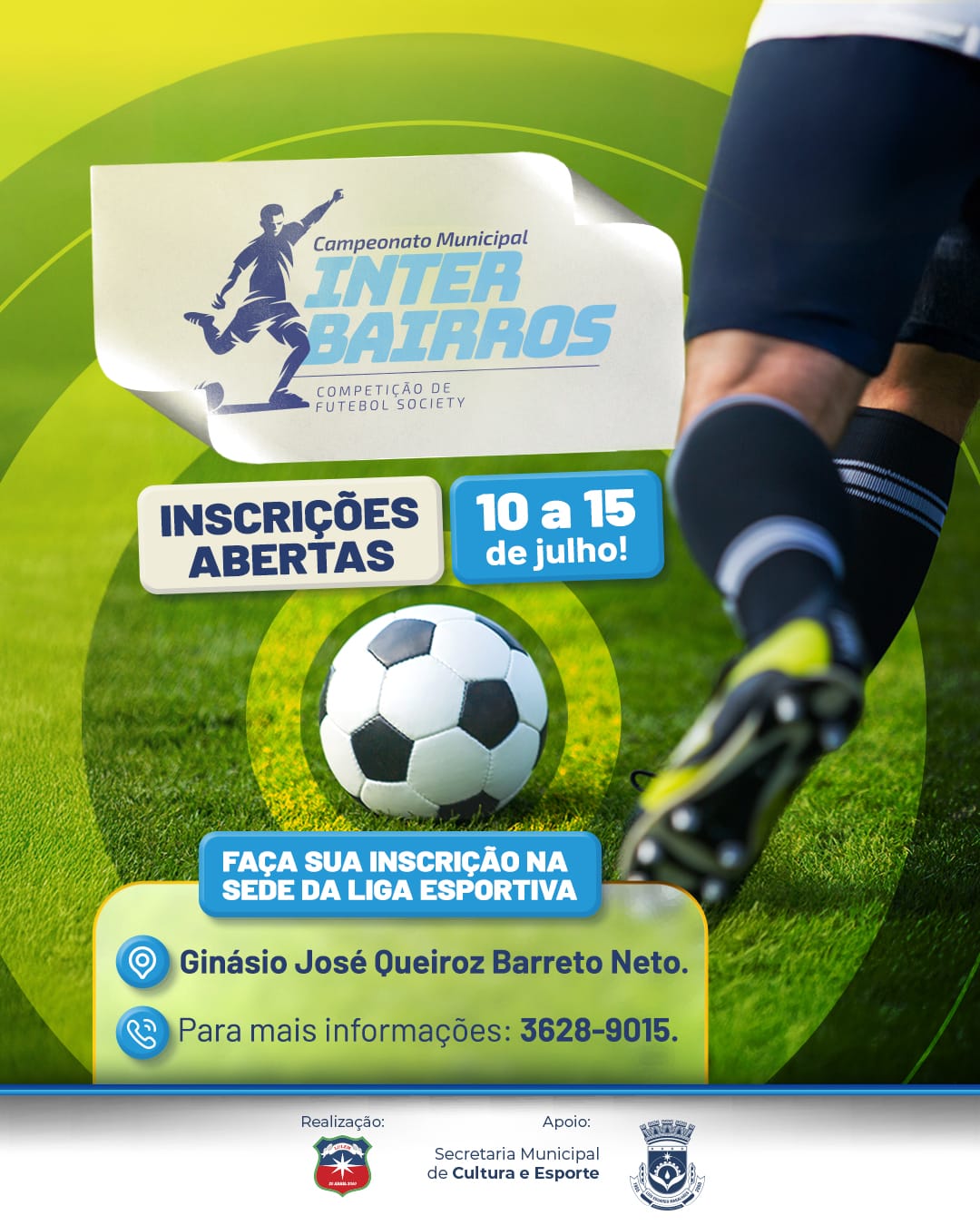 O Campeonato Municipal Interbairros é uma realização da Liga Desportiva, com apoio da Prefeitura, por meio da Secretaria Municipal de Cultura e Esporte.