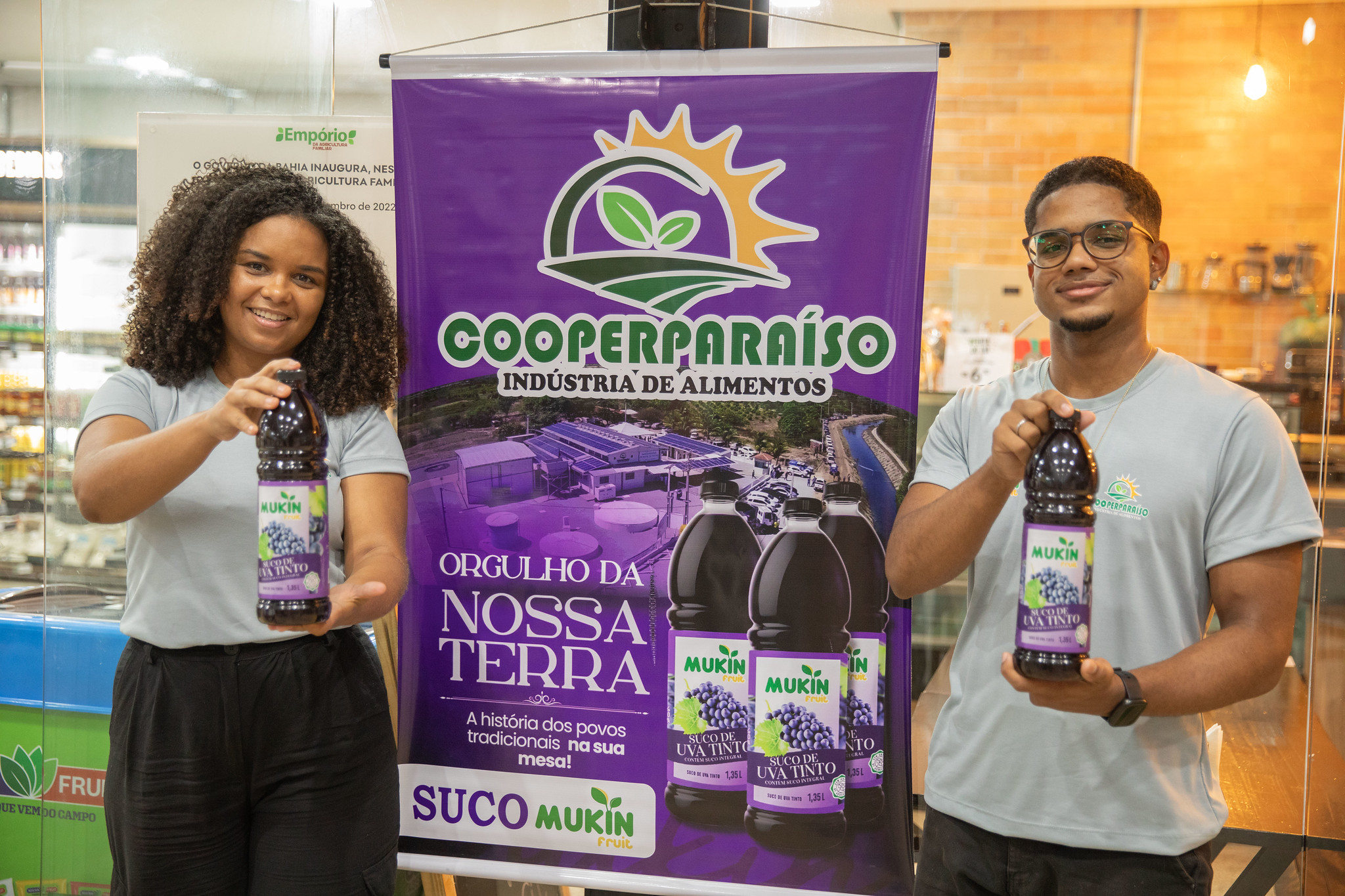 A Cooperativa Agroindustrial Vale do Paraíso (Cooperparaíso) lançou, na quarta-feira (04), no Empório da Agricultura Familiar, no Mercado do Rio Vermelho, o Mukin Fruit, primeiro suco de uva 100% integral, natural, livre de conservantes, açúcares e glúten, produzido por uma cooperativa da agricultura familiar no estado. O Governo do Estado, por meio da Secretaria de Desenvolvimento Econômico, concedeu incentivos fiscais à Cooperparaíso, possibilitando a aquisição de máquinas e equipamentos com redução tributária. Além disso, a secretaria foi responsável por fomentar o Selo Biocombustível Social da cooperativa, que garante a participação da agricultura familiar na cadeia produtiva do biodiesel e agora estimula a produção de alimentos.