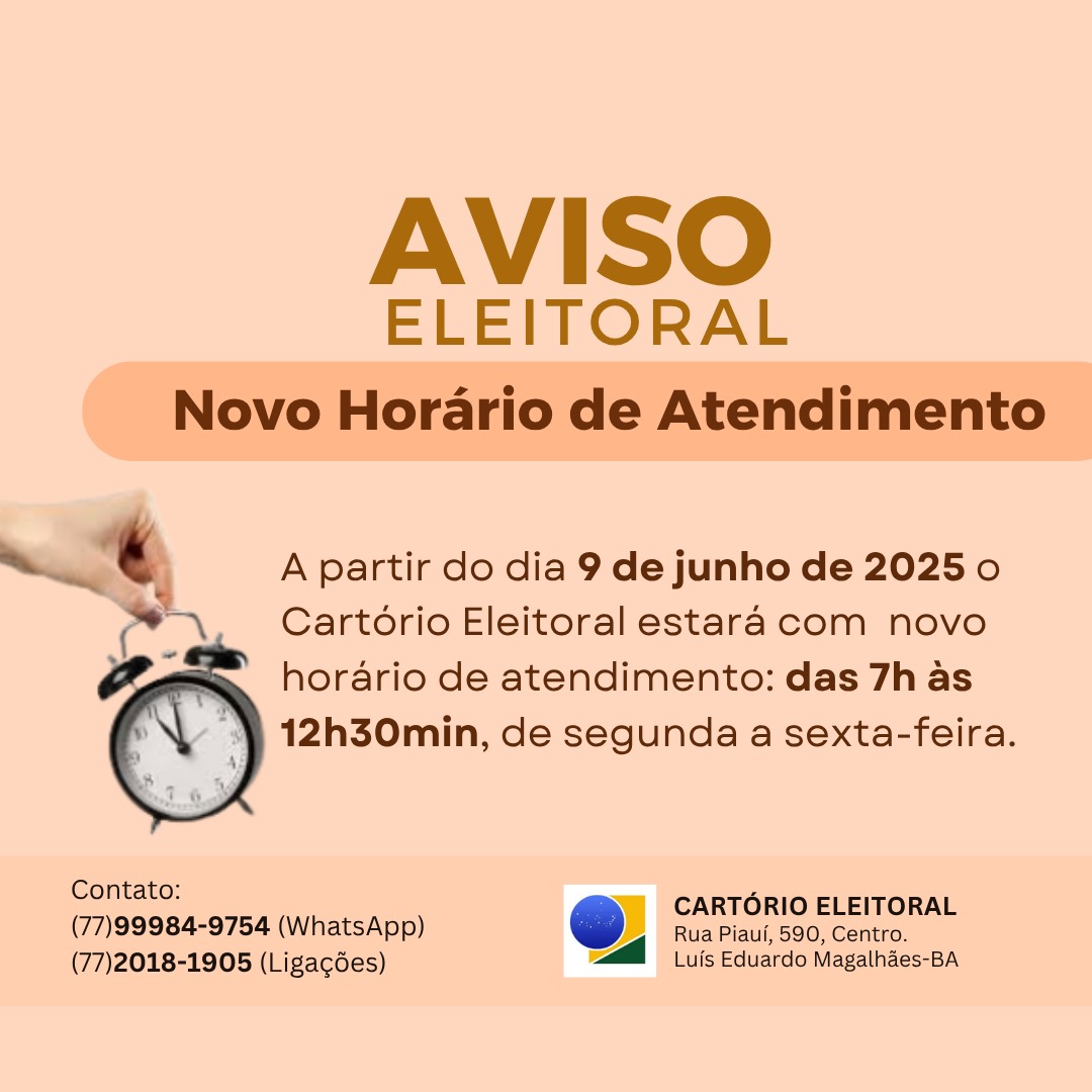 Cartório Eleitoral de Luís Eduardo terá novo horário de expediente.