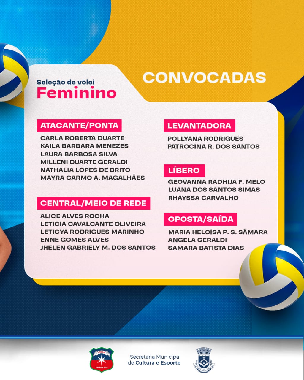 Confira a lista das atletas convocadas: