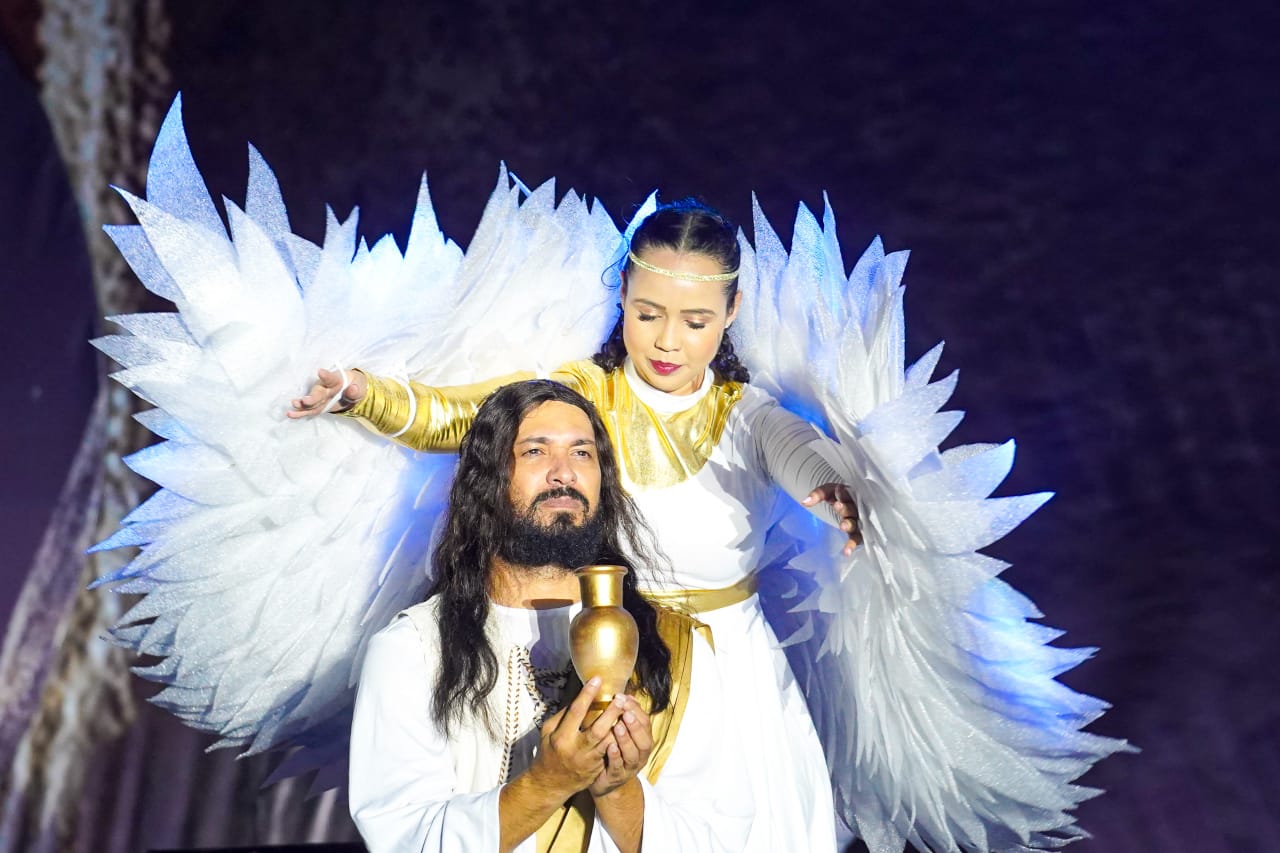 O evento, promovido pela Prefeitura, através da Secretaria Municipal de Cultura e Esporte, aconteceu na Praça da Bíblia, em Luís Eduardo Magalhães, e contou com um elenco numeroso e dedicado, formado por mais de 60 pessoas, entre atores da Associação Paixão de Cristo e bailarinos da Escola de Dança Jéssica Amaral.