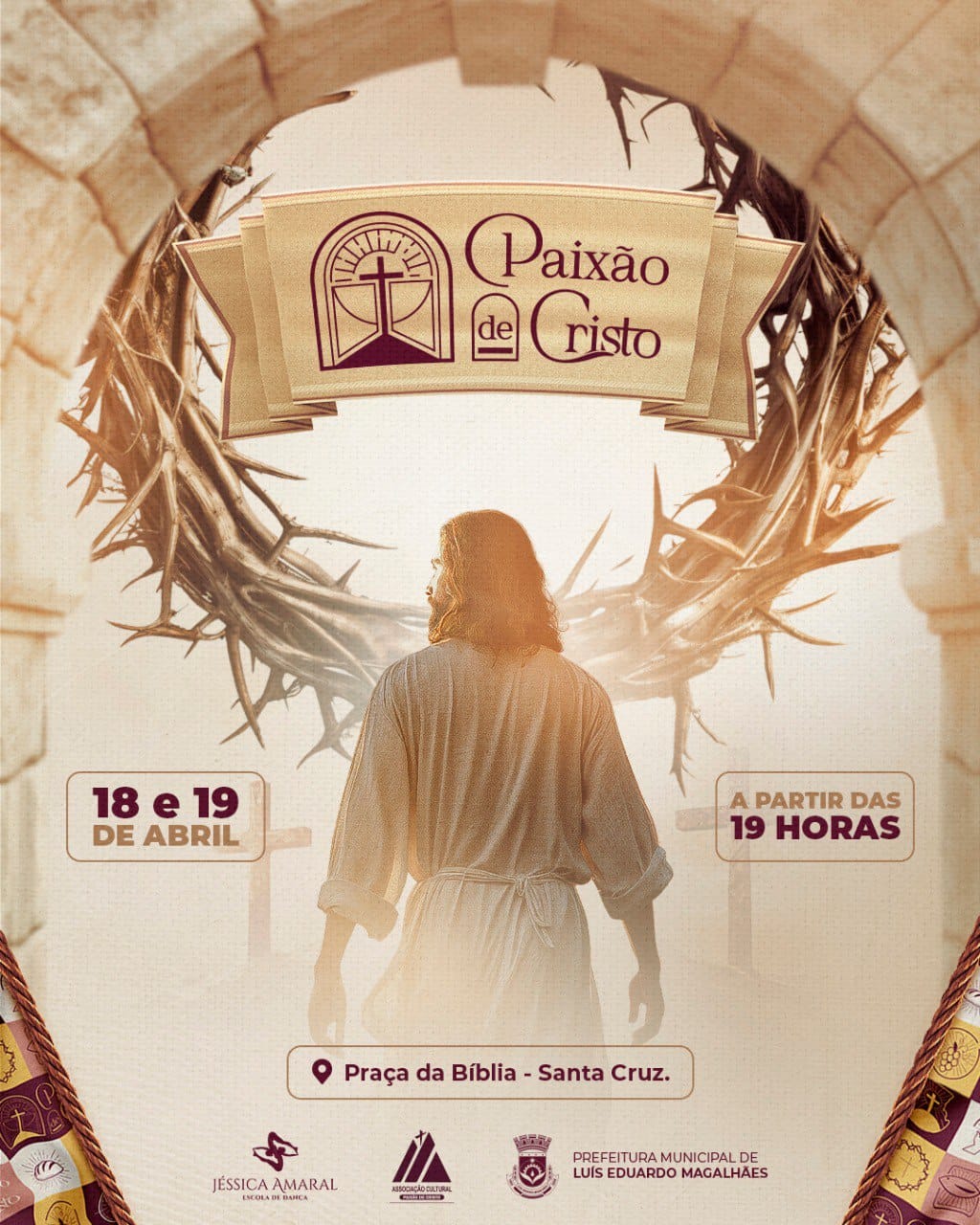 A Prefeitura de Luís Eduardo Magalhães promove, nos dias 18 e 19 de março, o grande espetáculo: A Paixão de Cristo, a maior história de amor de todos os tempos. A peça será encenada em celebração à Semana Santa.