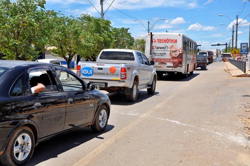 O trânsito de Barreiras, nos acessos das BRs 135 e 242 praticamente parou hoje pela manhã com o desvio do tráfego pesado para o anel viário. Como toda mudança radical no trânsito, acontecem engarrafamentos até os usuários se acostumarem. Fotos de Luís Carlos Nunes.