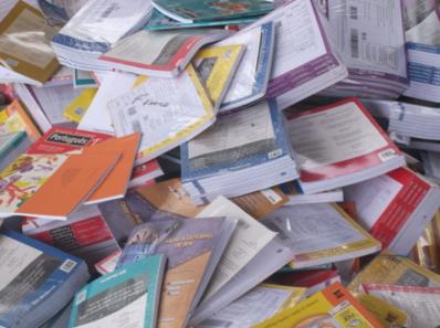 Livros didáticos novos no lixão.