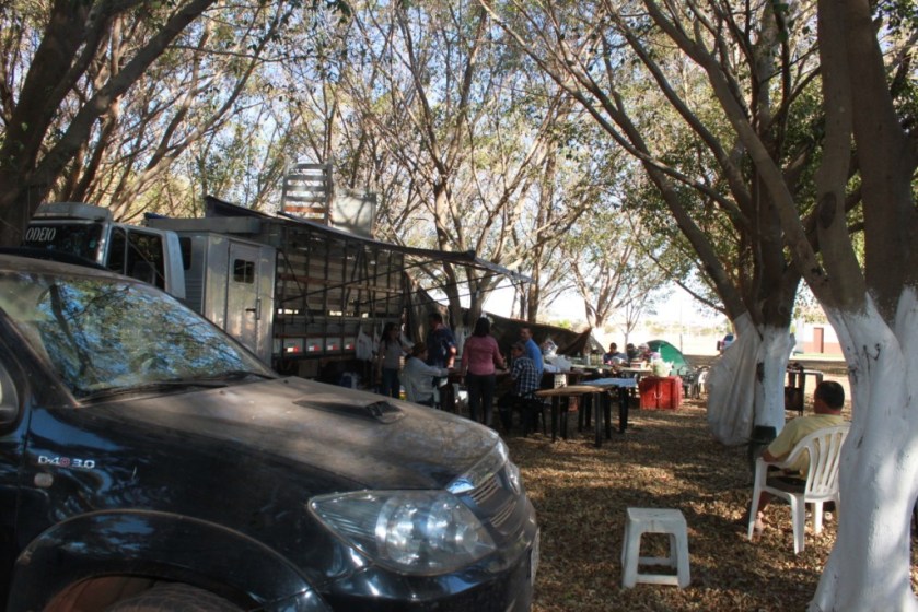 Roberto Barreto, o Barretão, avaliador do torneio de laço, veio junto com seus companheiros de julgamento de Bento Gonçalves, do interior do Rio Grande do Sul, entre eles Fidélis Gonçalves Nascimento, Nelson Gonçalves e Edirlan Gonçalves. Jorge Cobra e seu companheiro de narração, Lúcio Evandro, chegaram de Soledade, também no Rio Grande do Sul. Também estavam chegando laçadores de lugares tão distantes, como Mamborê, no Paraná, Cristalina e Jataí (GO) e Buritis (MG), atraídos principalmente pelo torneio da “Vaca Gorda”, que premiará o primeiro lugar com um automóvel Celta O Km. O torneio encerra-se domingo, com a entrega dos prêmios aos vencedores.