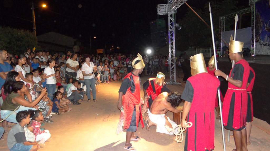 A Secretaria de Cultura e Turismo do Município realizou nesta sexta-feira, 29, um espetáculo teatral, a peça “Paixão, Morte e Ressurreição de Cristo”, dirigida por Lenildo Mano. O evento reuniu aproximadamente 1000 pessoas. A apresentação aconteceu em frente à Paróquia São José, no bairro Santa Cruz.