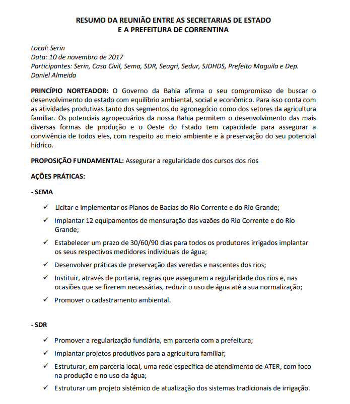 Os bolivianos se levantaram há 12 anos e não permitiram a privatização da água. No Brasil, Senadores votam em massa na entrega dos recursos ao setor privado – estrangeiro certamente – inclusive os dois baianos do PSD, Otto Alencar e Coronel. A Bahia depende de sua água, do grande lençol freático do aquífero Urucuia e da grande bacia do São Francisco para sustentar a pequena, a média e a grande agricultura.