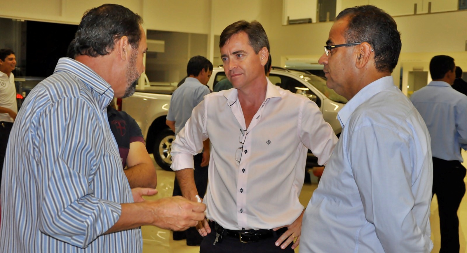 Colaboradores fazem um brinde pela nova revendaGerson Bonfanti, vice-prefeito de Formosa do Rio Preto, lidera roda de bate-papo.Filhos e esposa de Zuba Brandão, com o advogado André Rossete Cardozo