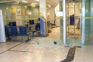 O assalto foi realizado por 8 homens, fortemente armados e encapuzados, que sequestraram o gerente e um funcionário, liberando-os pouco depois nas proximidades da cidade. Este é o 12º assalto este ano a agencias bancárias no interior da Bahia. Na foto, a agência do BB de Santana, também assaltada há poucos dias.