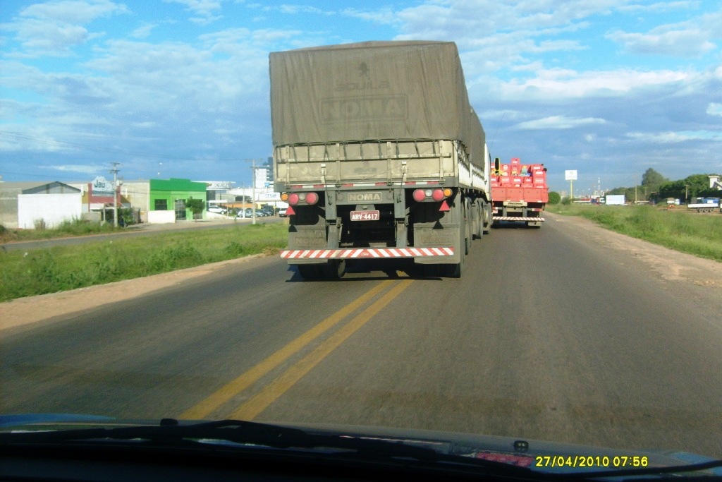 Este pesado bi-trem cometeu no mínimo 5 infrações de trânsito, hoje pela manhã, num trecho de apenas 5 quilômetros da zona urbana de Luís Eduardo: velocidade próxima a 90 kms/hora em região cuja velocidade máxima é 60 kms/hora; duas ultrapassagens em trecho de dupla faixa amarela; trafegar à distância mínima dos veículos à sua frente; direção perigosa ao tirar outros veículos que trafegavam em sentido contrário ao seu para o acostamento.