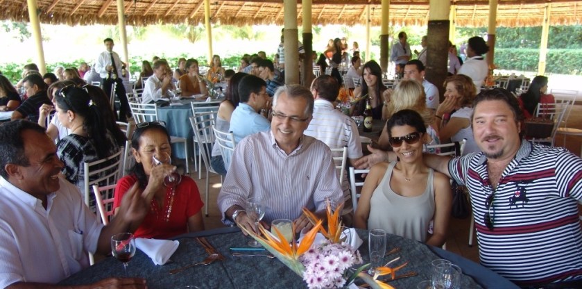 Com a presença de mais de 200 convidados, o prefeito Humberto Santa Cruz comemorou, no sábado, primeiro de maio, o seu aniversário, que na verdade transcorre hoje, 3. Ao par de ser um evento entre amigos, os discursos se prolongaram, com tom político, como não poderia deixar de ser. Estiveram presentes representantes de entidades associativas, entre eles Pedro Hersen, da ASSOMIBA, Vanil Kölln, do Sindicato Rural, Jair Francisco, da ACELEM, Afonso Alves Teixeira, do CONSEG-LEM, Sérgio Pitt, da AIBA, Ezelino Carvalho, presidente da Fundeagro, além de representantes da Polícia Militar, Capitão Gama, e do delegado José Resende, titular da Delegacia de Polícia Judiciária de Luís Eduardo e da Justiça, na pessoa do juiz Claudemir Pereira da Silva.