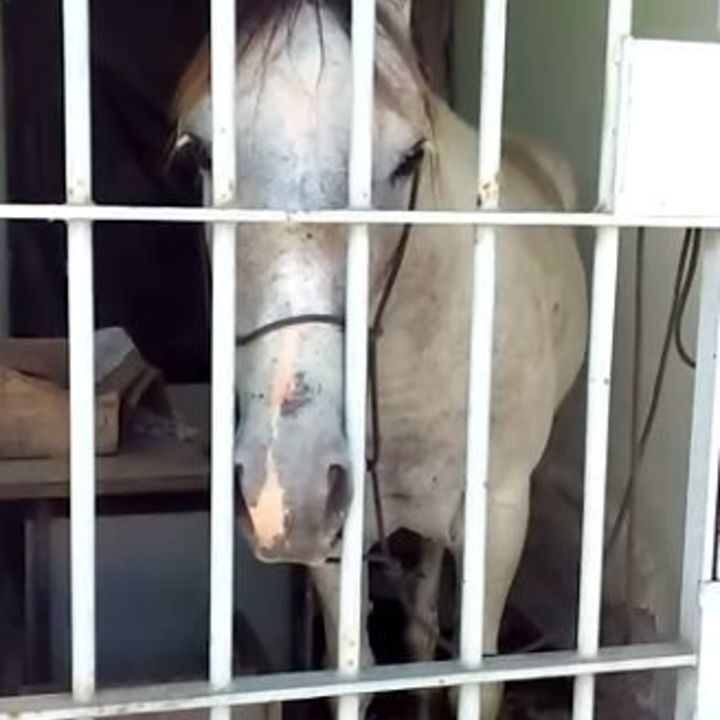 Onde estão os direitos equinos? Prenderam o cavalo sem água e sem comida.