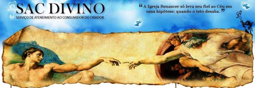Um dos sites mais criativos da internet: http://sacdivino.org Isso mesmo: Serviço de Atendimento ao Consumidor de Deus. É humor, gente. Blasfêmia é outra coisa. Por exemplo: político discursando para o povo e pelo povo. No twitter, o mesmo sujeito arrasa: http://twitter.com/OCriador .( Com pauta de Betina Sampaio)