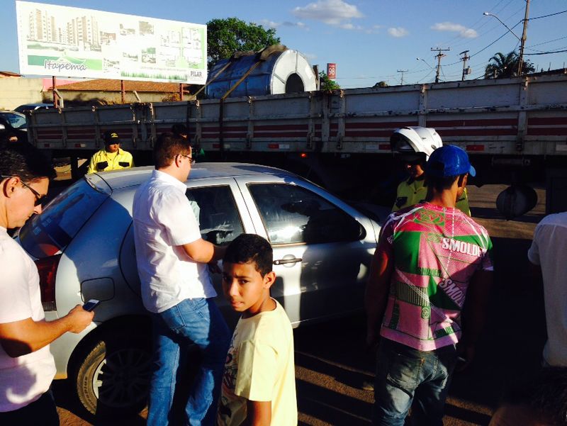 Ilson Pereira dos Santos, 27 anos, motorista há quase 2 anos de um caminhão distribuidor de ração do Frigrorífico Mauricéia, levou um grande susto hoje, em torno de 21h30m, na BR 242, quando um Corsa hatch de cor preta mudou repentinamente a sua trajetória e colidiu frontalmente com seu veículo. A colisão aconteceu em frente à Jaraguá Máquinas Agrícolas, o caminhão retornava para sua base no Distrito Industrial e o carro pequeno dirigia-se provavelmente ao Jardim das Oliveiras.