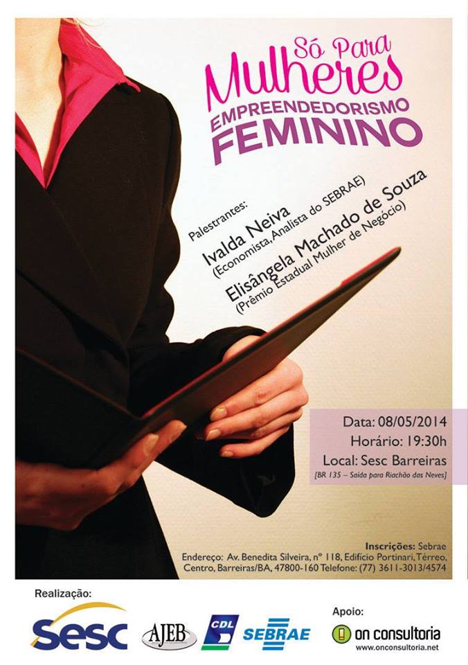 Estão abertas as inscrições para o encontro “Só para Mulheres: Empreendedorismo Feminino”, que acontece nesta quinta-feira, 8, às 19h, em Barreiras, no Oeste baiano. O evento vai discutir o empreendedorismo feminino e apresentar casos de sucesso de empresárias baianas. As interessadas em participar, podem se inscrever gratuitamente na sede do Sebrae Barreiras, localizada na Avenida Benedita Silveira, nº 118, Edifício Portinari, térreo.