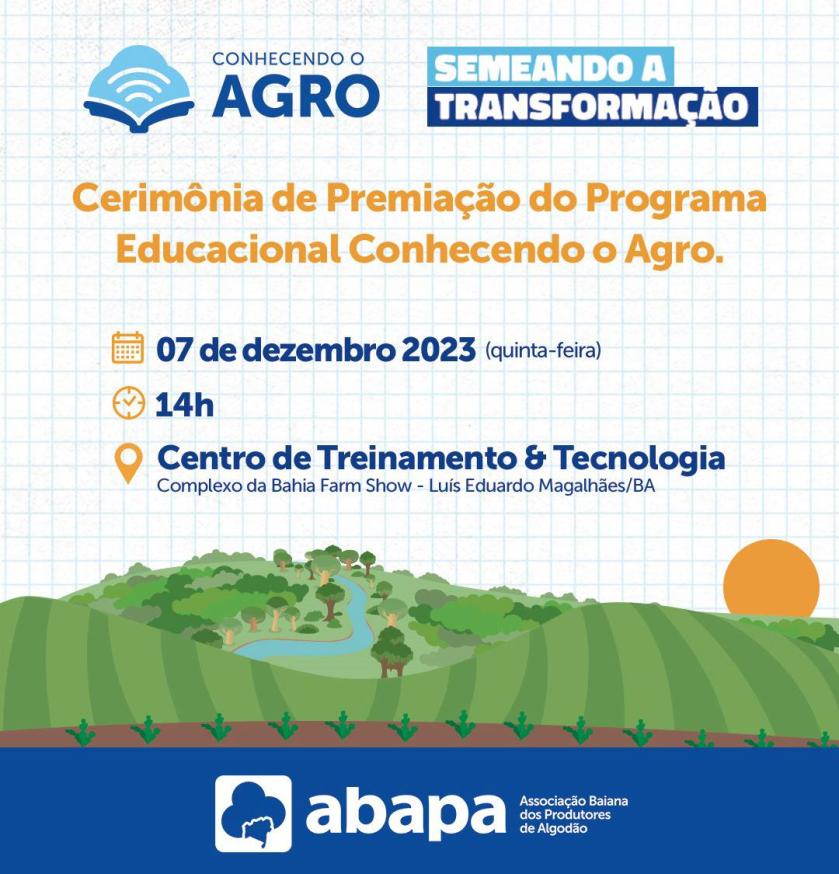 Abapa anunciará os vencedores do concurso Conhecendo o Agro 2023 nesta quinta-feira (7), às 14h