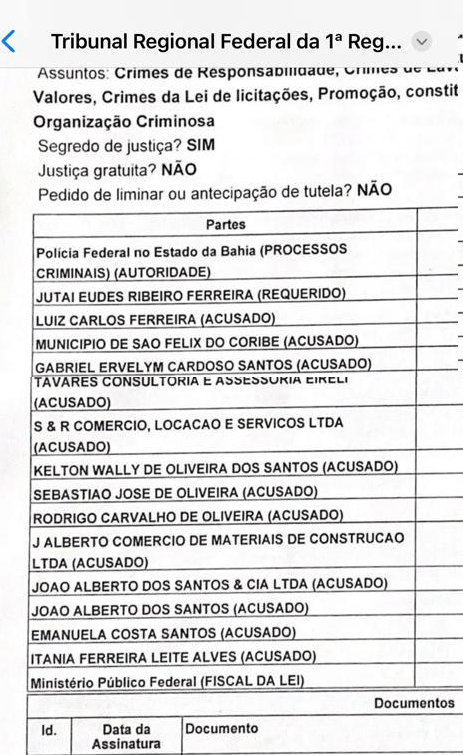 Pelo fato de o prefeito ter foro privilegiado, as ordens foram expedidas pelo Tribunal Regional Federal da 1ª Região. A operação investiga delitos de desvios de verba pública federal, fraude à licitação, corrupção ativa e passiva, lavagem de dinheiro e organização criminosa. Em caso de condenações, os investigados podem pegar até 34 anos de prisão.