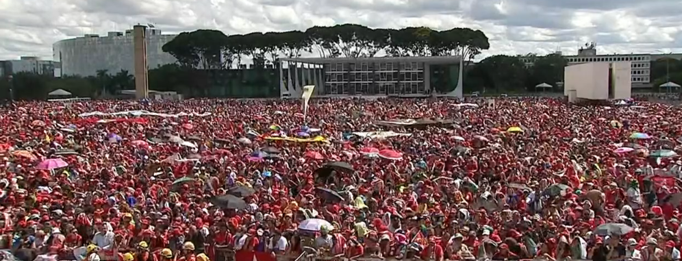 A vocês, que vieram de todos os cantos deste país – de perto ou de muito longe, de avião, de ônibus, de carro ou na boleia de caminhão. De moto, bicicleta e até mesmo a pé, numa verdadeira caravana da esperança, para esta festa da democracia.