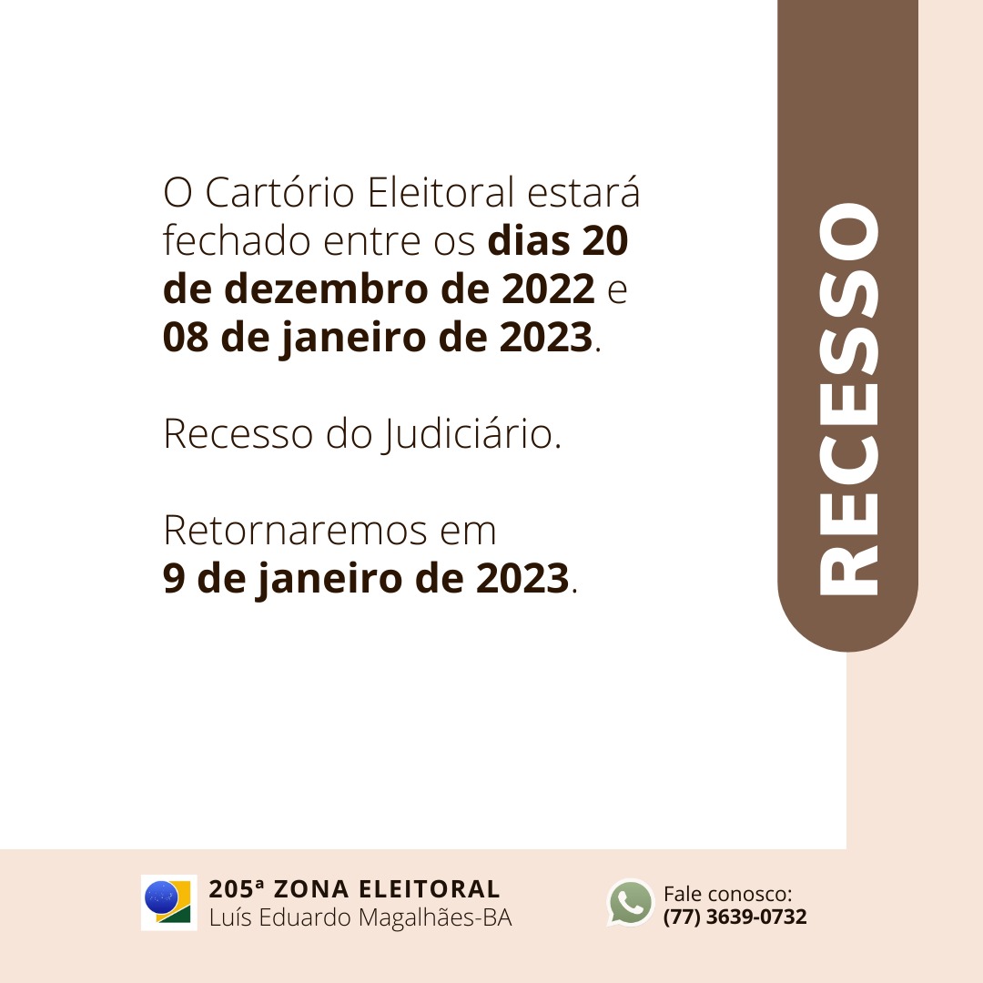 Recesso do Cartório Eleitoral termina dia 9 de janeiro