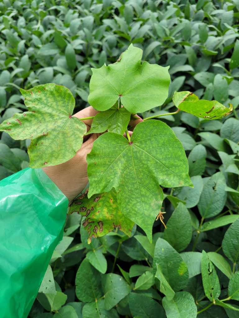 Planta de algodão com sintomas de folhas carijó, causado por Rotylenchulus reniformis
