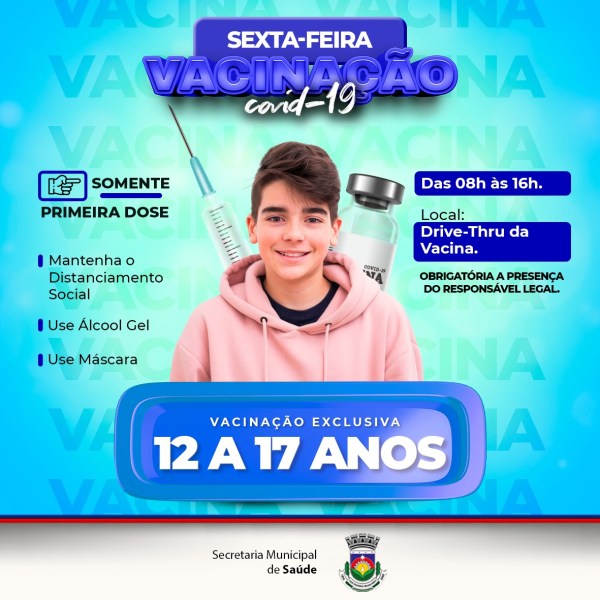 Você que tem a partir de 18 anos de idade e ainda não recebeu a primeira dose da vacina contra o Covid-19, aproveite este sábado (27), das 8h às 12h, no sistema Drive-Thru e no antigo PROMATI e garanta sua imunização.