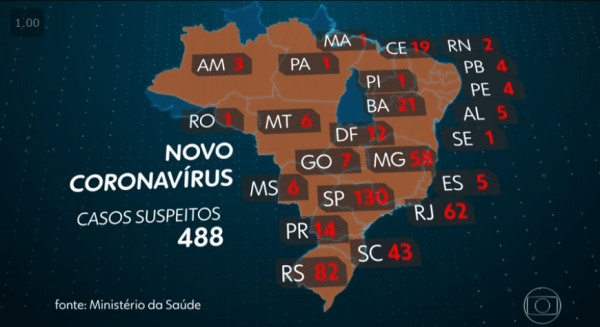 “Temos vigilância sentinelas em todo o Brasil, que fazem o monitoramento e vigilância de casos graves em hospitais… Estamos na fase de contenção do vírus. O nosso objetivo é evitar a dispersão”, afirmou o secretário de Vigilância em Saúde, Wanderson Oliveira, durante apresentação nesta segunda-feira.