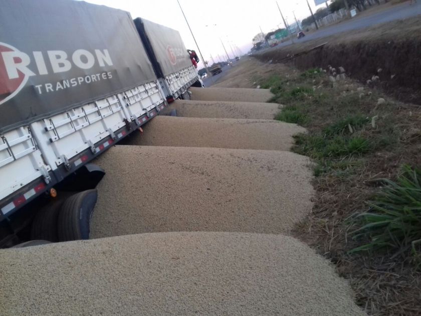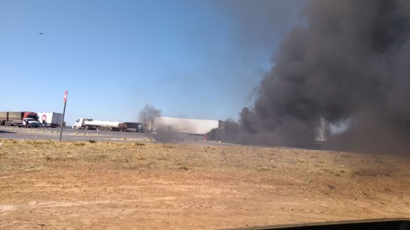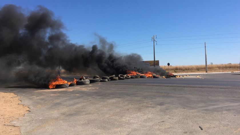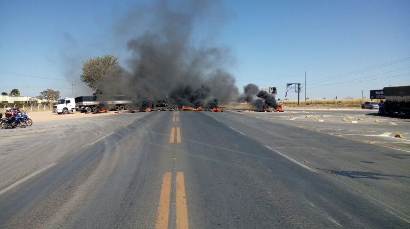 Caminhões com graneleiras abertas, atolados em soja, e pneus inflamados bloquearam o acesso a Barreiras, com exceção de ônibus, carros pequenos e cargas perecíveis.