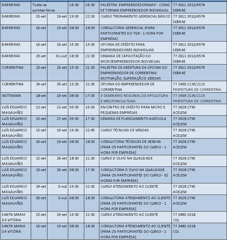 E, na próxima segunda-feira, 15, às 9h, acontece a inauguração de pontos de atendimento da Prefeitura no Centro Comercial de Luís Eduardo, no bairro Santa Cruz. No final da tarde, acontece a aula inaugural do Pronatec, no Ponto Cidadão da Prefeitura.