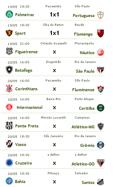 Resultados da 1ª Rodada do Brasileirão Classificação após a primeira rodada Os gremistas que me perdoem, mas Internacional e Grêmio começam quase como terminaram o campeonato de 2011. O Colorado gaúcho na frente e o Grêmio “um pouco” mais atrás. -12.099405 -45.798260