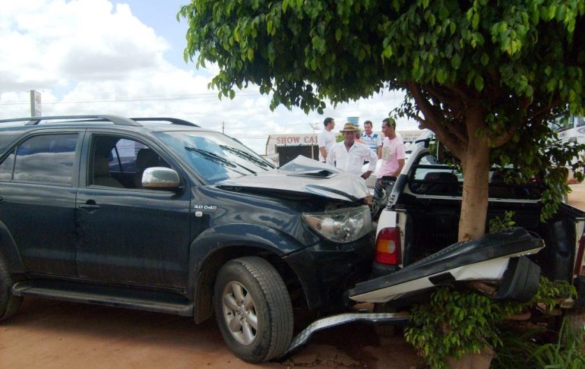 A D-20 Chevrolet, de placas JLS-5747, cujo dono não quis identificar-se a este jornal, fez uma manobra arriscada para entrar na BR, com destino ao centro, saindo da avenida lateral. Ao atravessar a pista, cortou a frente da Hillux SW-4, placas EIX-2488, dirigida por Carlos Teruo, residente no Jardim Paraíso. Este, para não chocar-se com a D-20, fez um desvio brusco, vindo a abalroar com violência a Strada Fiat placas JMV-6820, de propriedade Regivaldo Néris Todão, residente no Mimoso II, que esperava sua vez de entrar na BR, bem como a S-10 cabine dupla de cor branca e placas JOE-9128, dirigida por Mário Zilli.