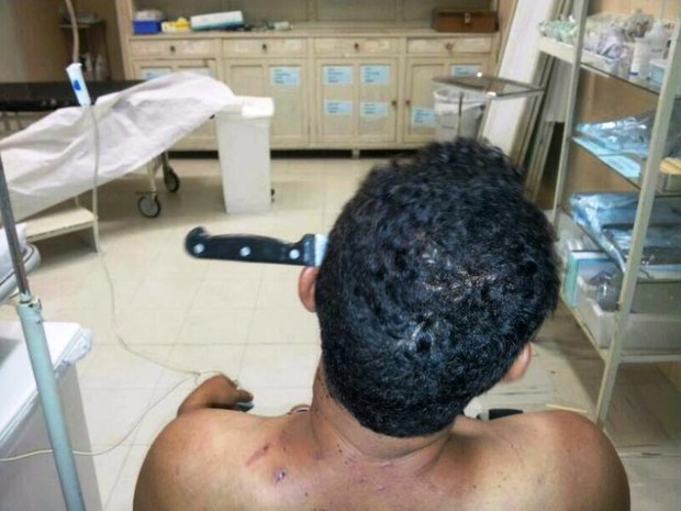 Homem chega no Hospital com faca cravada na cabeça e conversando com enfermeiros
