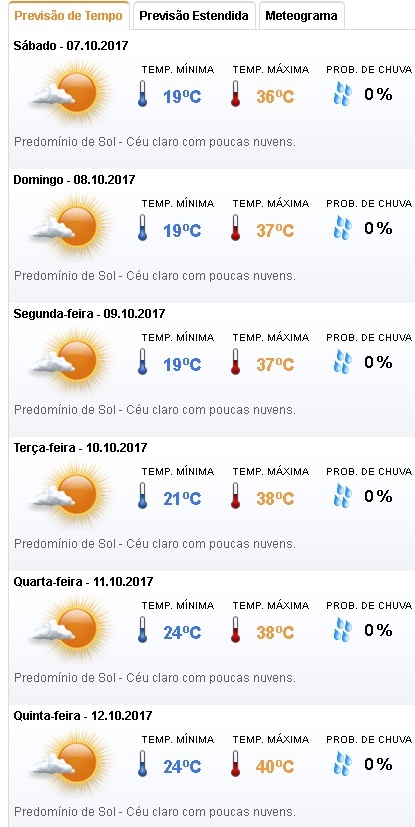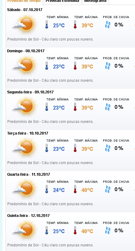 As informações são do INPE – Instituto Nacional de Pesquisas Espaciais. Claro que as medições são de temperatura feita à sombra, em ambiente ventilado. Isso ao sol, com o asfalto novo do Zito reverberando o calor, passa dos 45ºC fácil. Dá pra fritar ovo na calçada, fato aliás muito conveniente nestes tempos em que o bujão de gás do Temer já ultrapassou os R$80,00.