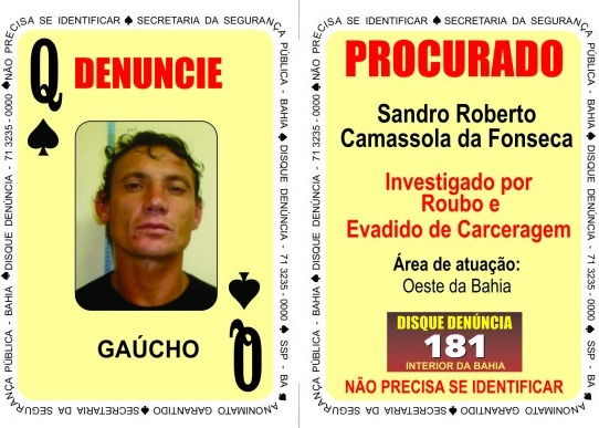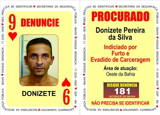 Com esta captura, já são 32 bandidos excluídos do baralho, que apresenta, desde a última quarta-feira (23), seis novas cartas: os Áses Antônio Martim dos Santos (Copas) e Jair Sacramento Carvalho (Paus), latrocidas foragidos da Penitenciária Lemos Brito, o Rei de Espadas e a Rainha de Paus, Francisco de Assis da Silva e Arlete Rocha de Jesus, acusados de assassinar o próprio filho, uma criança de apenas dois anos, o Dez de Paus, Regivaldo Baldoíno de Souza, indiciado por latrocínio e condenado pela justiça por outros crimes, e o Dois de Espadas, Joseíldo Cardoso dos Santos, o “Pernambuco”, indiciado por homicídio na Região Oeste.