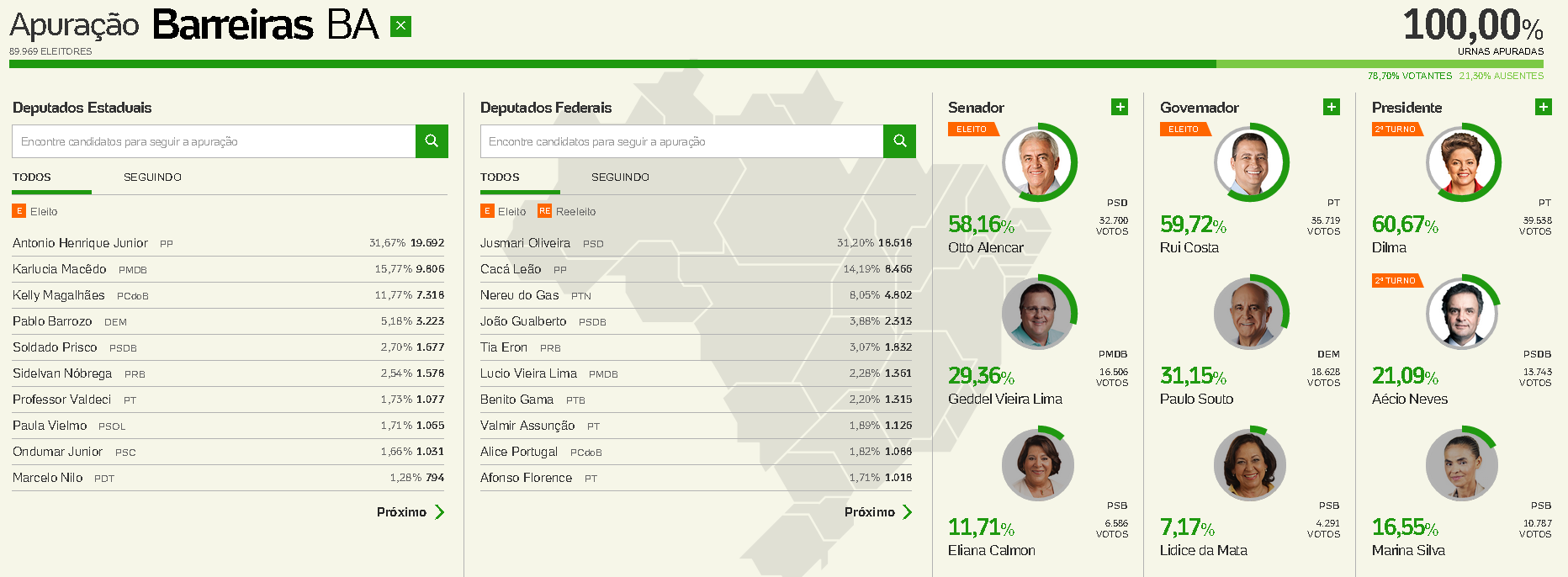 Pesquisa informal, encomendada por um grupo de “investidores”, realizada entre os dias 30 de julho e 01 de agosto em Barreiras, no Oeste da Bahia, com 841 entrevistas, obtida pelo ZDA, revela a preferência dos eleitores do município nas disputas para presidente da República, governador da Bahia, senador, deputado federal e deputado estadual.