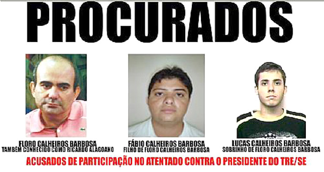Ricardo e seus familiares eram acusados, dentro de uma série interminável de crimes, de chefiar o atentado contra o presidente do Tribunal Regional Eleitoral de Sergipe , o desembargador Luiz Antônio Araújo Mendonça, em agosto do ano passado. Calheiros foi detido duas vezes, mas estava foragido há dois anos. Antes de fugir, ele teria jurado Mendonça e um deputado estadual de morte. Ex-promotor de Justiça, Mendonça foi secretário de Segurança por duas vezes durante a administração do ex-governador João Alves (DEM).