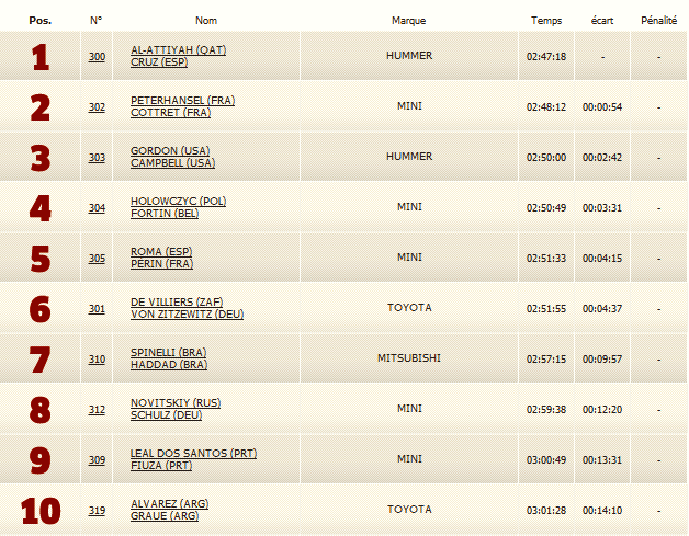 1º Al-Attiyah/Cruz #301 (Mini) 4h23min35