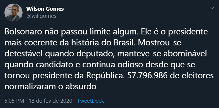 Soou absurdo o presidente dizer que “meu país esteve muito próximo do socialismo” e sugerir que cubanos do programa Mais Médicos seriam agentes socialistas parecidos com espiões de Cuba nos anos 60. O Brasil nunca esteve próximo do socialismo. Isso é mentira. É totalmente insensata essa ideia de risco socialista no Brasil e na América Latina. Pega mal internacionalmente, parece paranoico e antiquado.