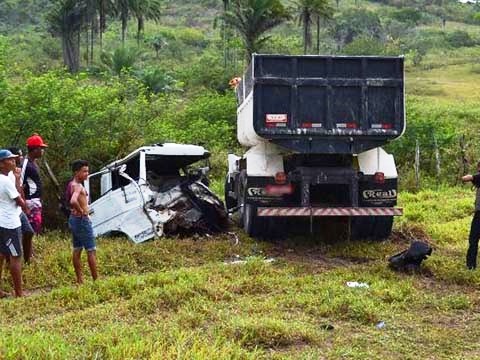 A PRF informou que a carreta, que transportava rochas invadiu a contramão e bateu no ônibus da viação Águia Branca. As duas ambulâncias seguiam atrás do coletivo e também foram atingidas.